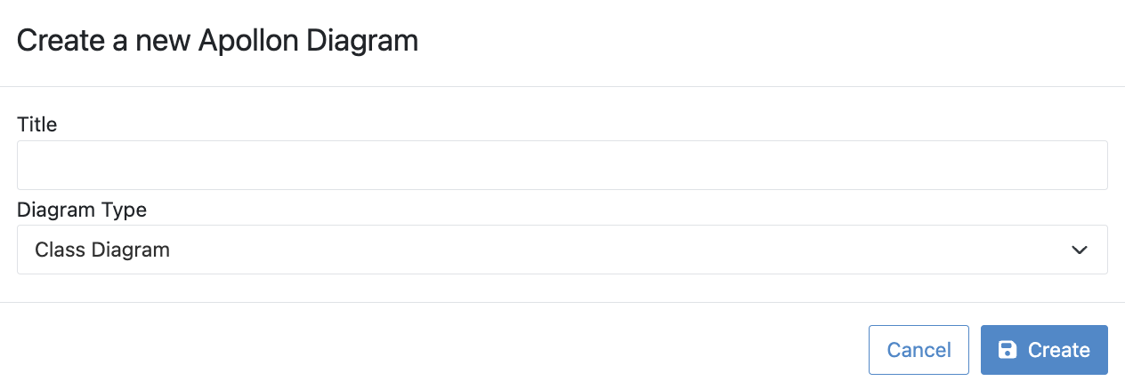 Clicking on the creation of a new Apollon Diagram button opens the following form: