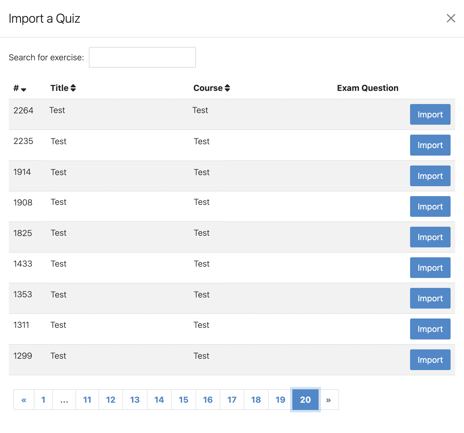 This option allows to import existing questions from other quiz exercises, courses, exams and files.