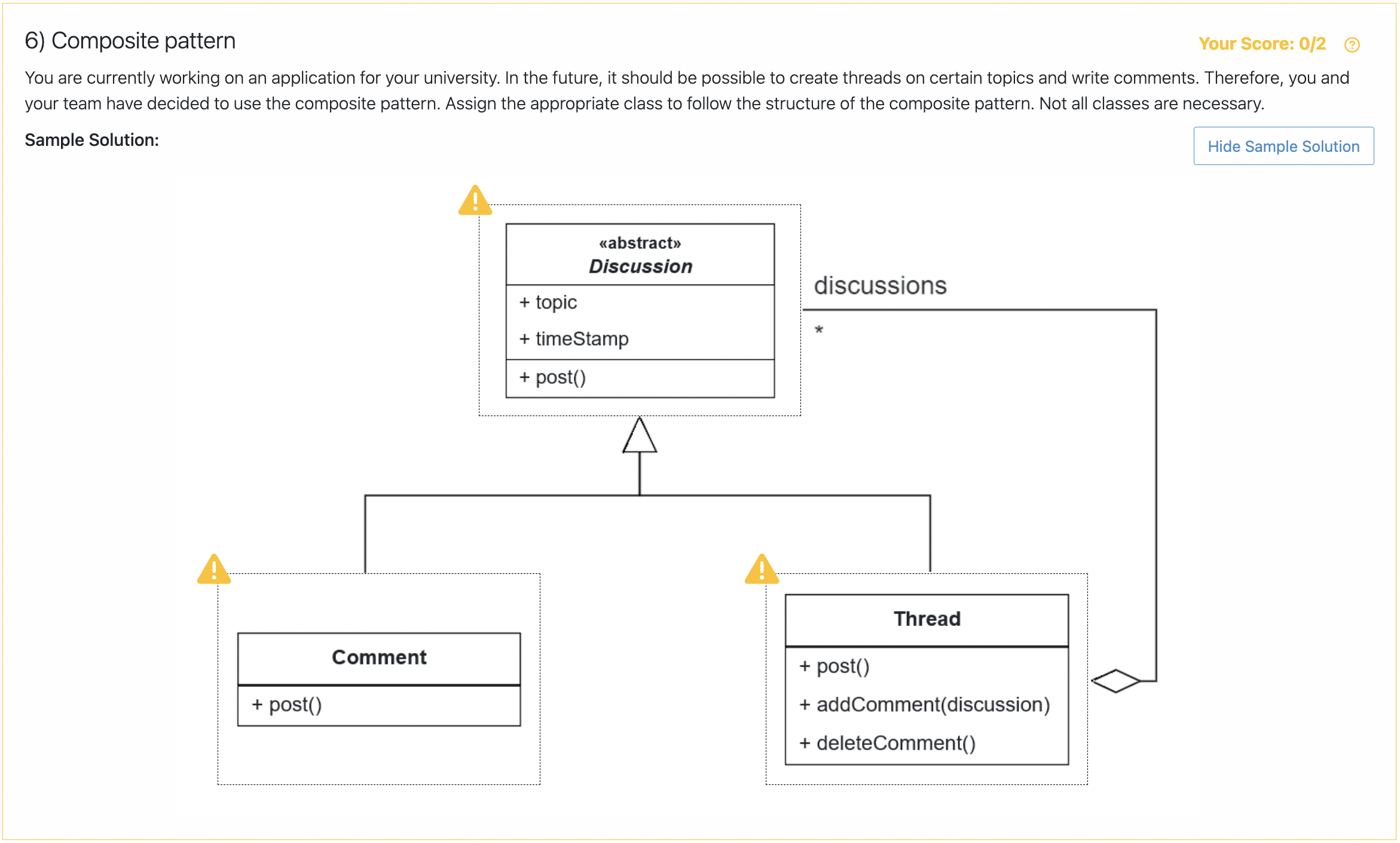 In the case of Drag and Drop questions, the solution is shown by clicking the Show Sample Solution button .