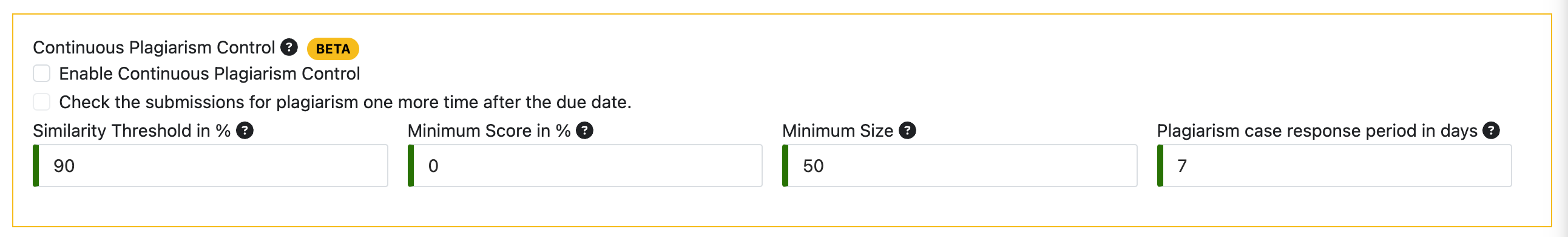 The CPC is an experimental feature designed to shorten the feedback loop for students and reduce the manual work required from tutors and instructors. Continuous feedback on potential plagiarism aims to encourage students to submit their original work and enhance their learning outcomes. The continuous plagiarism control does not accuse students of plagiarism, nor does it affect their scores. Instead, it notifies students of significant similarities detected between their submissions, allowing them to revise their solutions.