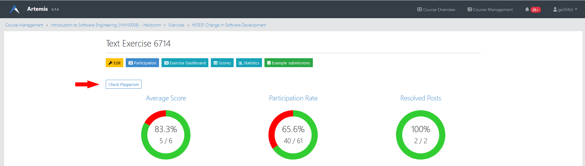 For course exercises: Course Management → Course → Exercises → Your Exercise.