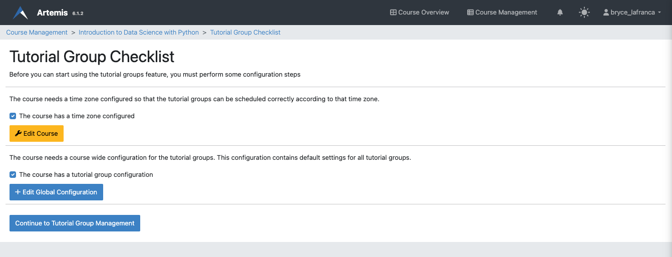 Tutorial groups can be managed by instructors by navigating to the course’s Tutorial Groups