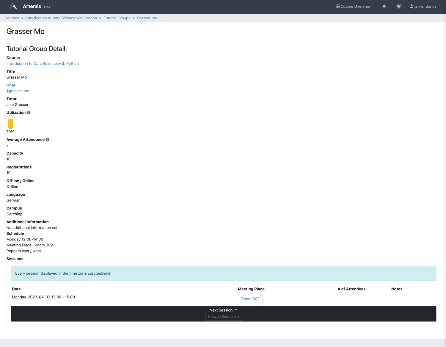 button. Furthermore, the tutor can enter the number of attending students for each session. This information is used to calculate the utilization of the tutorial group.